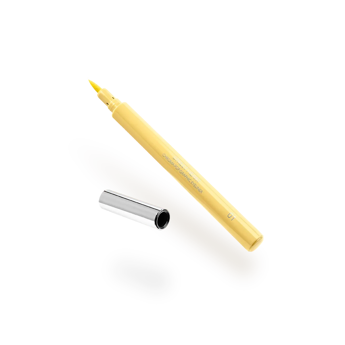 Eyeliner colorido em caneta. Um traço ultra espesso assina, define e ilumina os olhos com cores incrivelmente vibrantes. Para visuais gráficos, pop, pequenas obras de arte que realçam o olhar, como os murais. Vai fazer o seu coração disparar: -Ponta de feltro de precisão para linhas finas e facilmente moduláveis -Fórmula fluida, fina e flexível que cria uma película aderente sobre as pálpebras e seca rapidamente -Cor intensa, traços ricos e pigmentados desde a primeira passagem -Maxima manobrabilidade